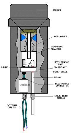 measuring chamber. A solid-state level sensor, connected to an electronic